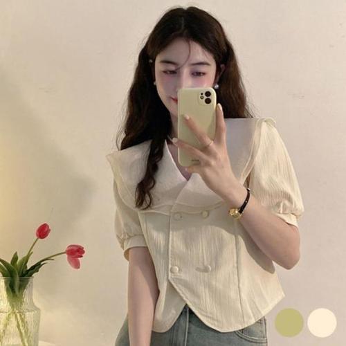 [오너클랜]인기상품 여성 이중소매 프릴 반팔 블라우스 1P 여름 데이트룩 [WC66DB9_250916]