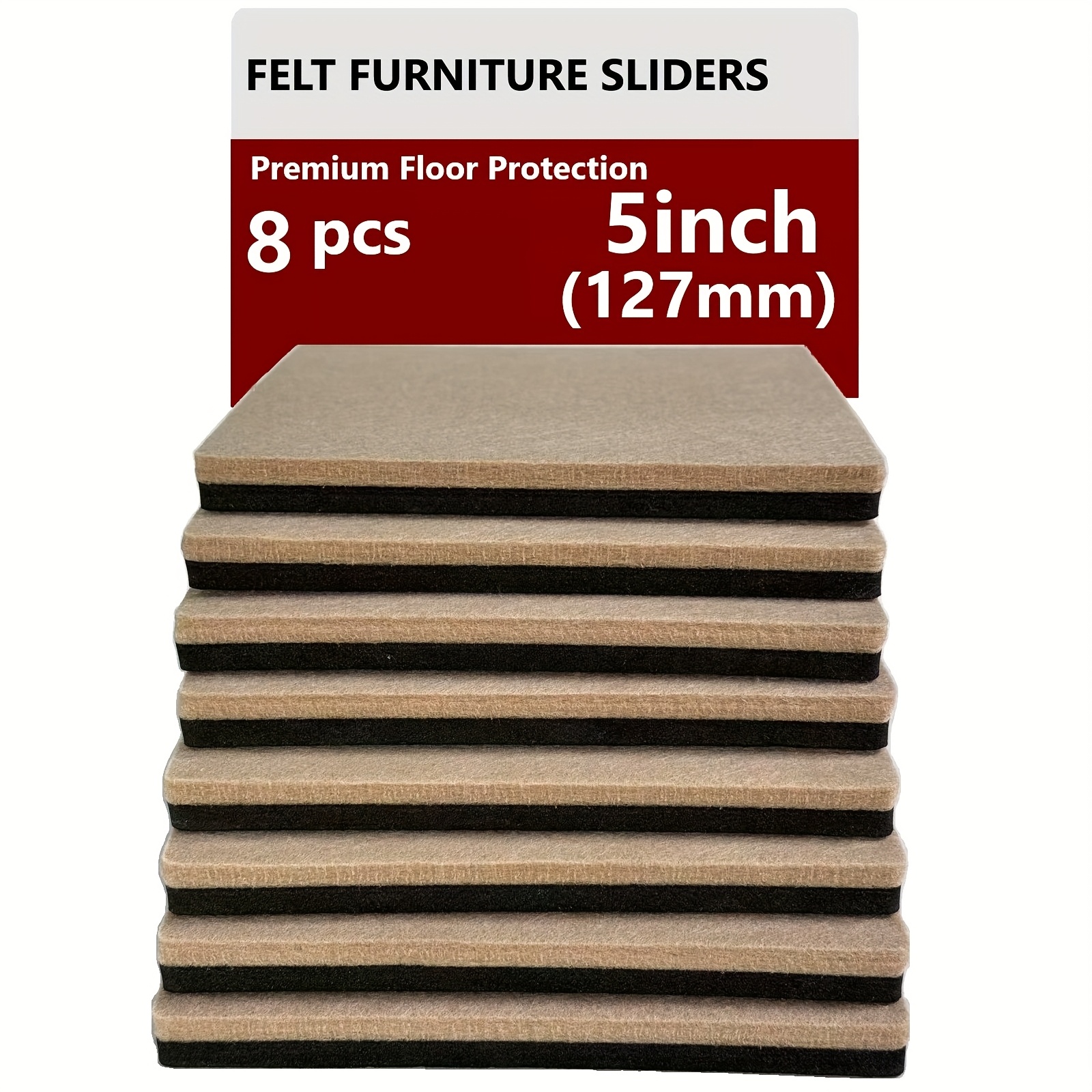 TEMU 하드우드 바닥용 이지글라이드 가구 슬라이더 - 8개, 5인치 사각형, 재사용 가능 & 튼튼한 무거운 물건 이동을 위한, 블랙