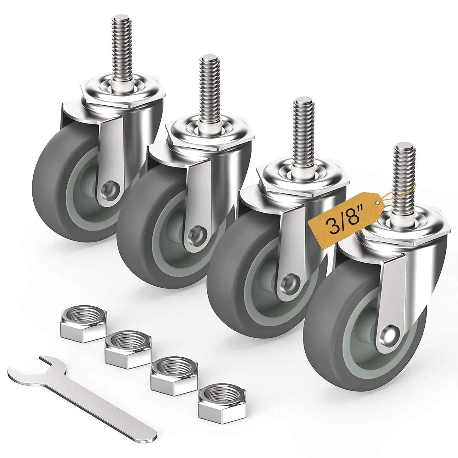브레이크 스템 캐스터가 없는 3인치, 스레드 회전 캐스터 4개 세트 헤비 듀티 캐스터 그레이