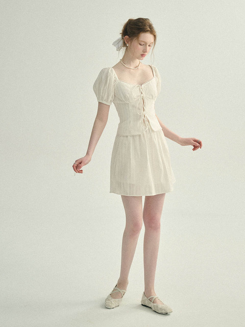 헤지스 여성 25SS 면100%아이보리 플레어 미니 스커트 HSSK5BS17IV