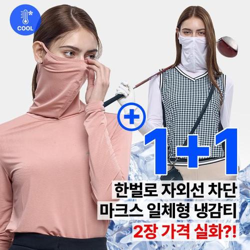[이지바이]1+1 올커버 여성 냉감 마스크넥 긴팔 티셔츠(W5OPST38)
