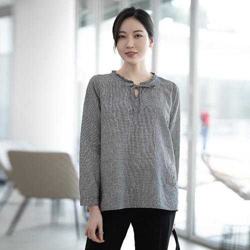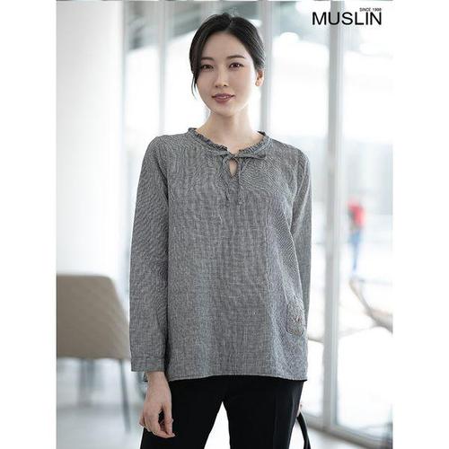 [모슬린]엄마옷 린넨 잔체크 생활한복 블라우스 MQG127380 마담 미시 중년여성 빅사이즈 할머니옷 50대 6..