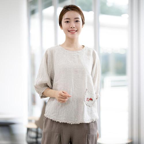 엄마옷 린넨 레이스 생활한복티셔츠 614BNM406 중년여성/50대/60대/마담/빅사이즈/할머니옷