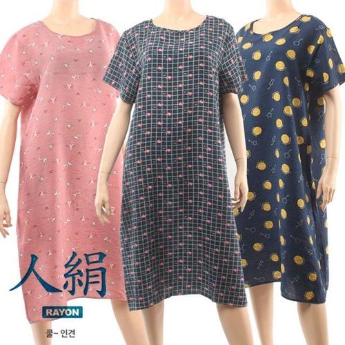 |KCD261E|여름 여성용 국산 인견 패턴 반팔 쿨링 원피스 잠옷
