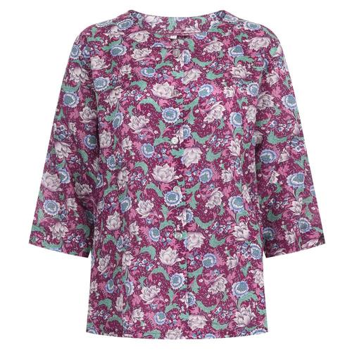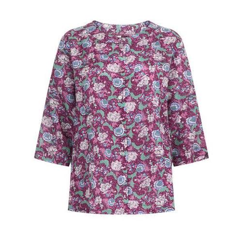 [샵앤][샵앤] 국산 여성 단추 라운드넥 인견 7부소매 4패턴 블라우스 YF-WBL-20665-퍼플