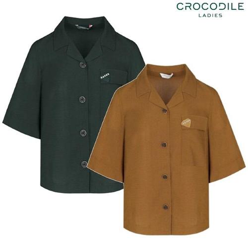 [크로커다일레이디](CLEFBL502) 와펜 인견 오픈카라 블라우스_GN