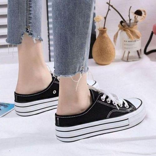 [라일리의류] Rly 여성 스니커즈 뮬 통굽 캔버스 블로퍼 2컬러 키높이