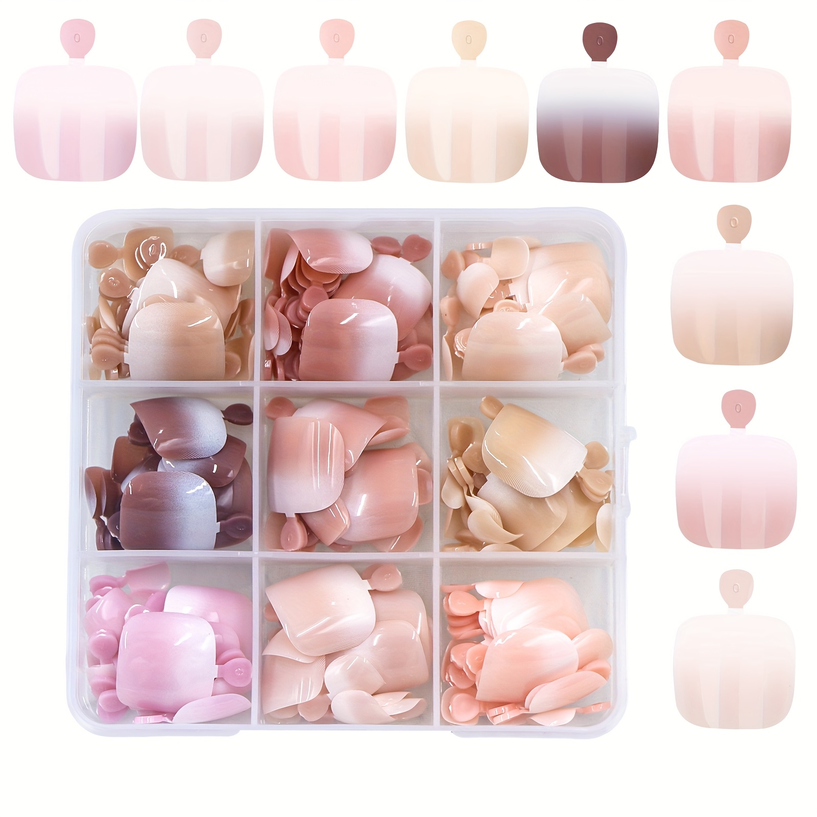 TEMU 96개 프레스온 네일 세트 - 누드 & 핑크 사각형, 중간 길이, 거울 같은 완벽한 색상 마무리, 프랑스 팁 디자인 미러 파우더 포함, 젤리 글루 & 네일 파일 포함, 분리 가능한 접착제 네일 팁 | 신부 네일 | 결혼식 네일