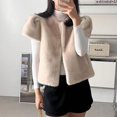 [옷자락] 여자 러블리 셔링 캡소매 소프트퍼 인조밍크 겨울 조끼