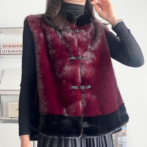 [옷자락]여성 매듭 투톤 망토 인조밍크 힙커버 중년 퍼 조끼