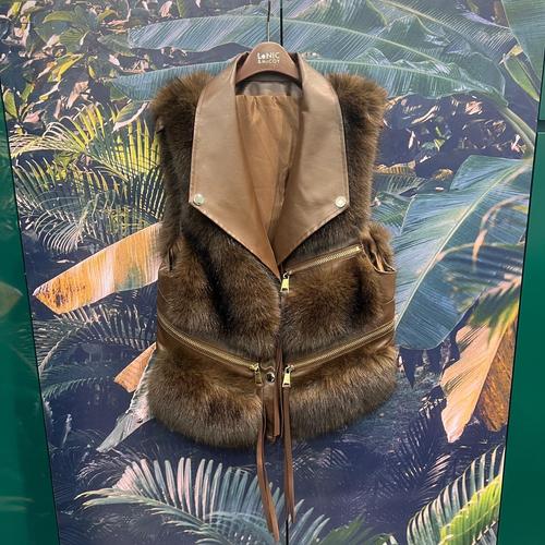 갤러리아_올리비아로렌 배색 패치 인조퍼 베스트 VOBJF3W9361