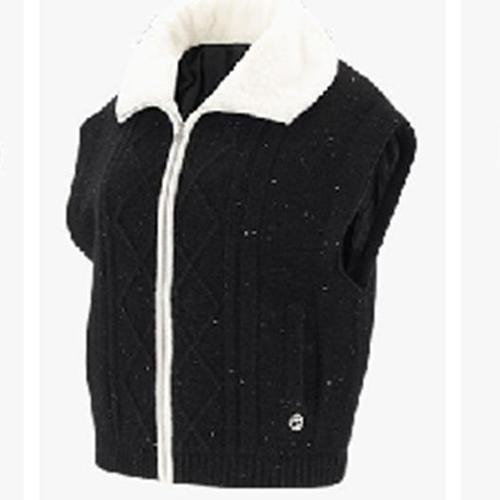 [엘르골프]여성 인조 퍼 배색 풀 오픈 니트 베스트 6K-83101-199_US