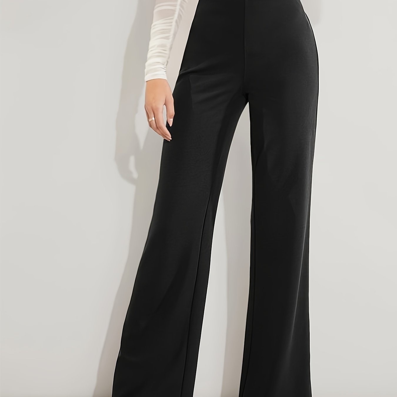 TEMU 탄력 있는 하이웨이스트 솔리드 컬러 레그 팬츠, 우아하고 캐주얼한 루즈핏 바지, 직장 및 일상 출근에 적합한 여성용 봄·여름 롱팬츠