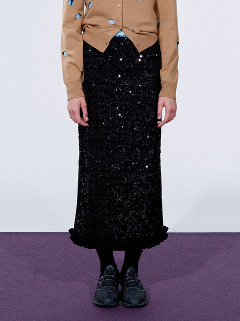 [카일로] 테일러드 울 트위드 스커트 스팽글 블랙