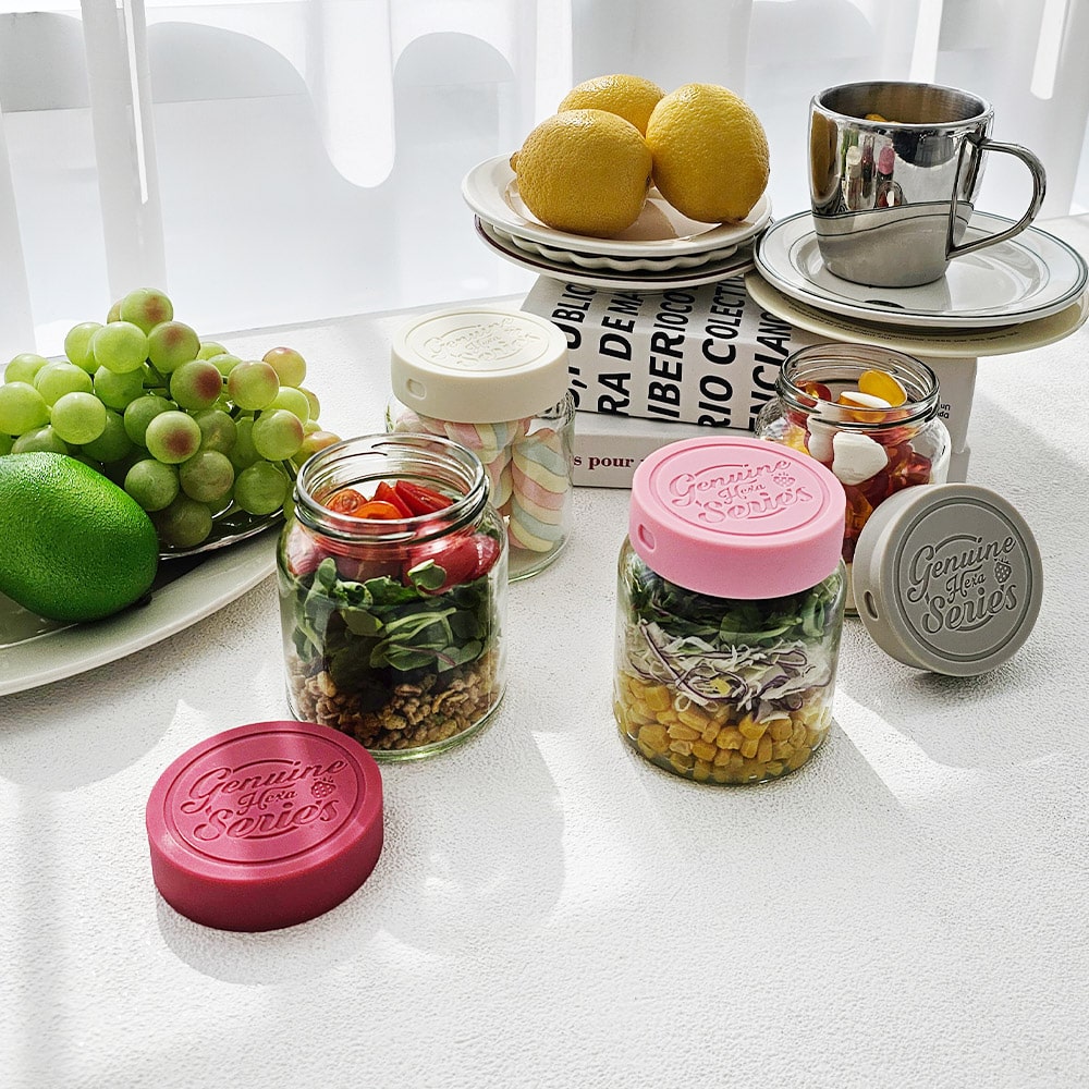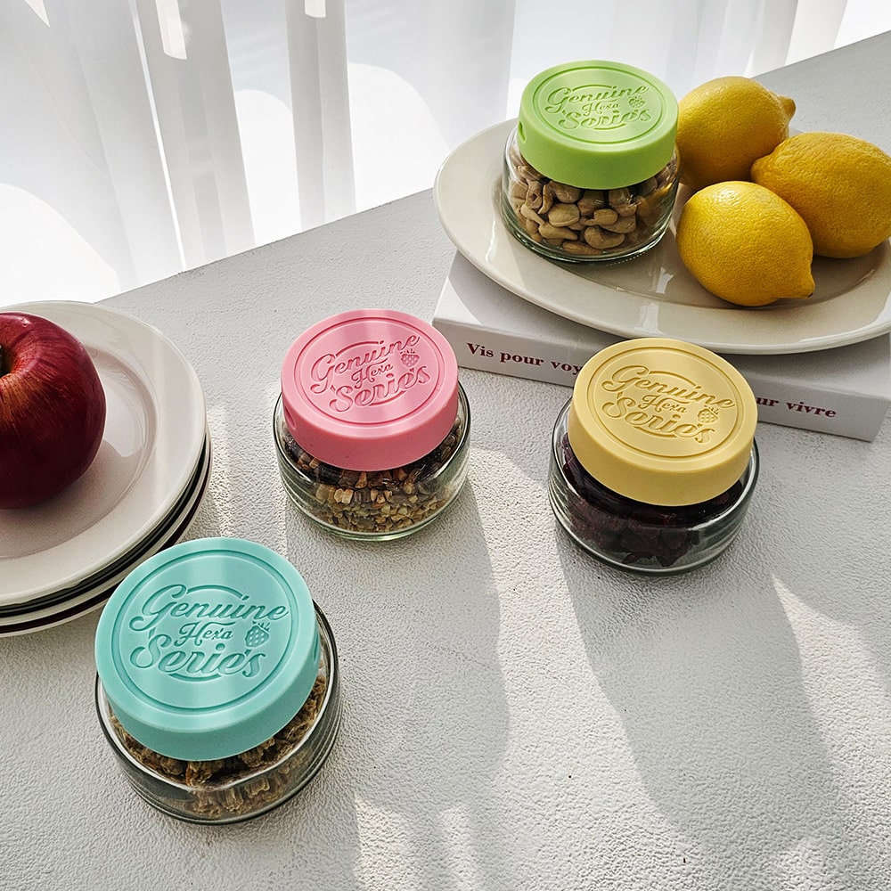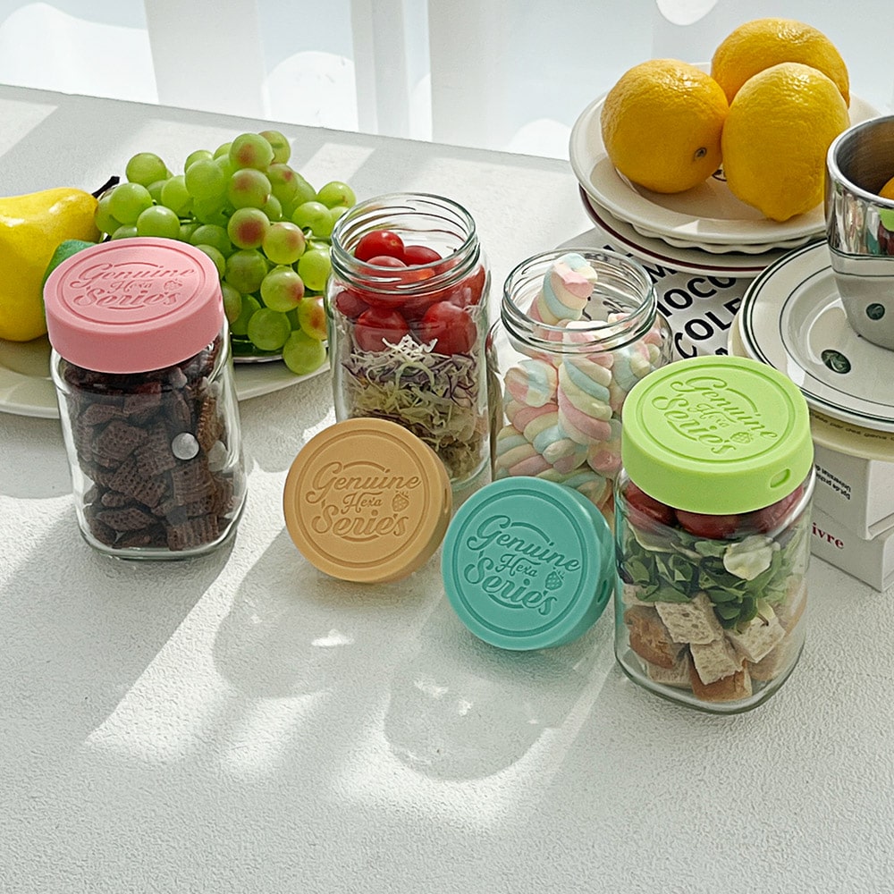 헥사 제뉴엔 실리콘뚜껑 샐러드 밀프랩 보틀 유리병 150ml SG210 4P