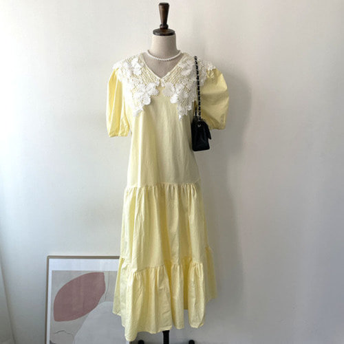 에르디테 / 레이스 빅카라 일자 루즈핏 캉캉 반팔 롱 원피스 2컬