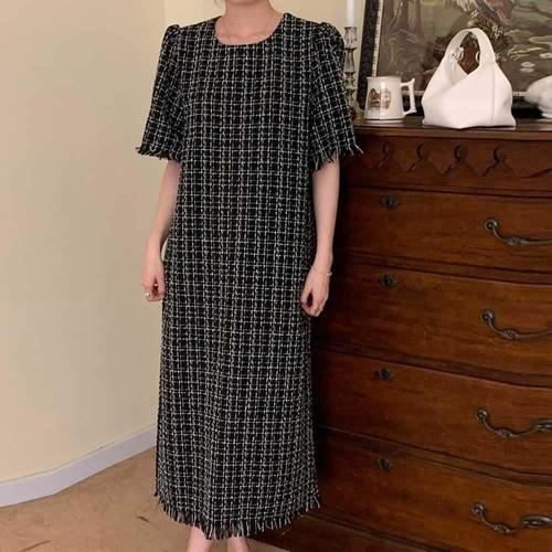 [모노무드]모노무드 트위드 롱원피스 일자핏 프린지 디자인 데이트룩