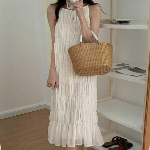 [모노무드]모노무드 주름 나시 롱원피스 얇은 어깨끈 일자핏 체형커버