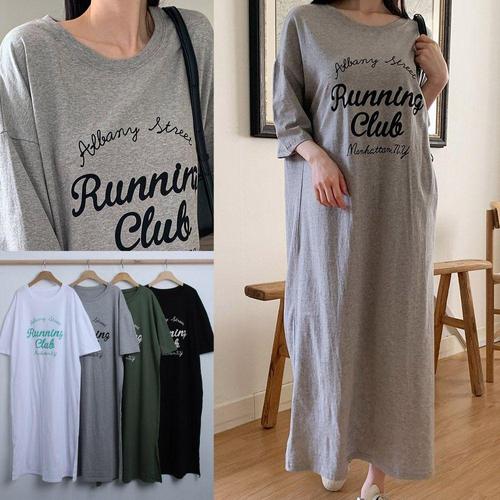 [옷자락]여자 레터링 양트임 롱슬리브 박시 일자핏 롱원피스