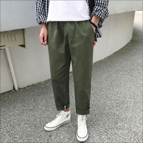 [에이치플러스몰]일자핏 남자 허리밴딩 롤업 팬츠 면바지 스타일 3색