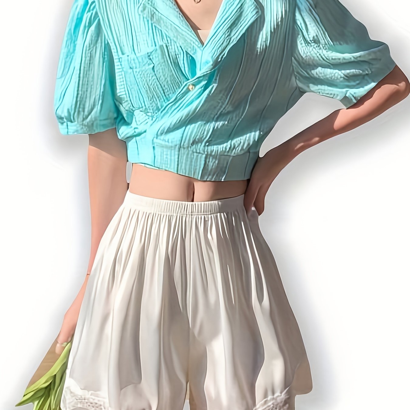 TEMU 1pc 여성의 우아한 여름 수면 반바지, 대비 레이스 트림, 가벼운 투명하지 않은 홈웨어, 꽃무늬 디자인, 폴리에스터 블렌드, 벨트 없음, 짧은 길이, 성인 사이즈, 여름 반바지