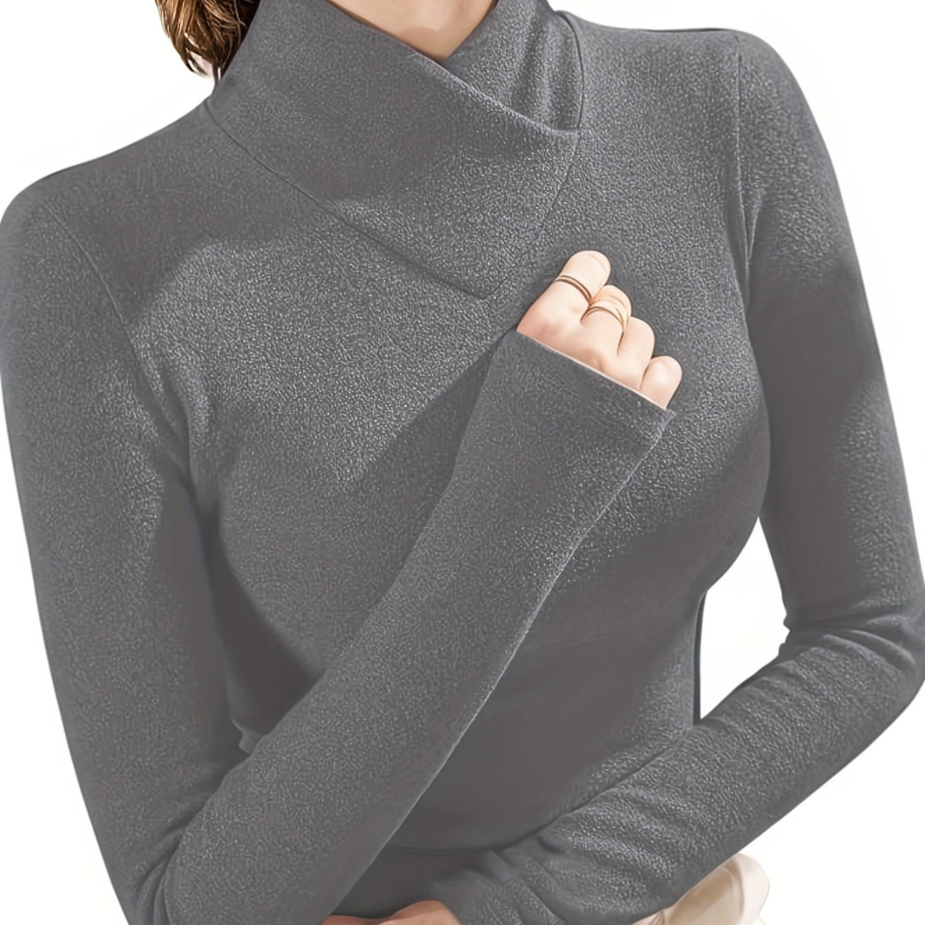 TEMU 여성용 크로스넥 웜 롱슬리브 티셔츠, 폴리에스테르 블렌드, 스트레치, 캐주얼, 가을/겨울