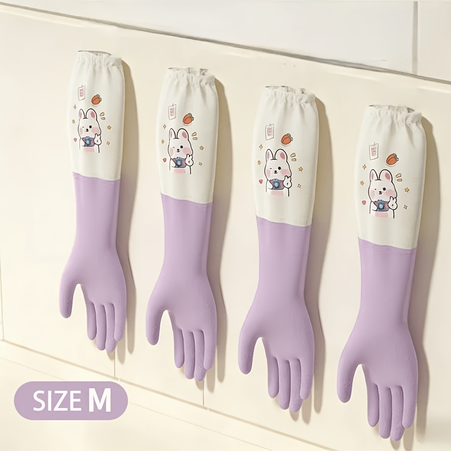 TEMU 일상적인 사용을 위한 가정용 주방 장갑 한 쌍 - 깨끗하고 부드럽고 편안하며, 손 모양에 적합한 인체공학적 디자인, 귀여운 만화 패턴과 높은 미적 감각; 가정용 필수품