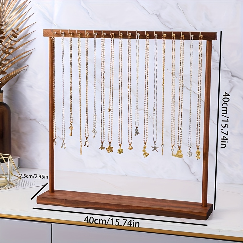 TEMU 세련되고 고급스러운 인조 호두나무 색상 철제 고리 목걸이 진열대, 보석상 액세서리 및 주얼리 목걸이 진열대, 가정용 보석류 및 목걸이 보관함, 주얼리 타워