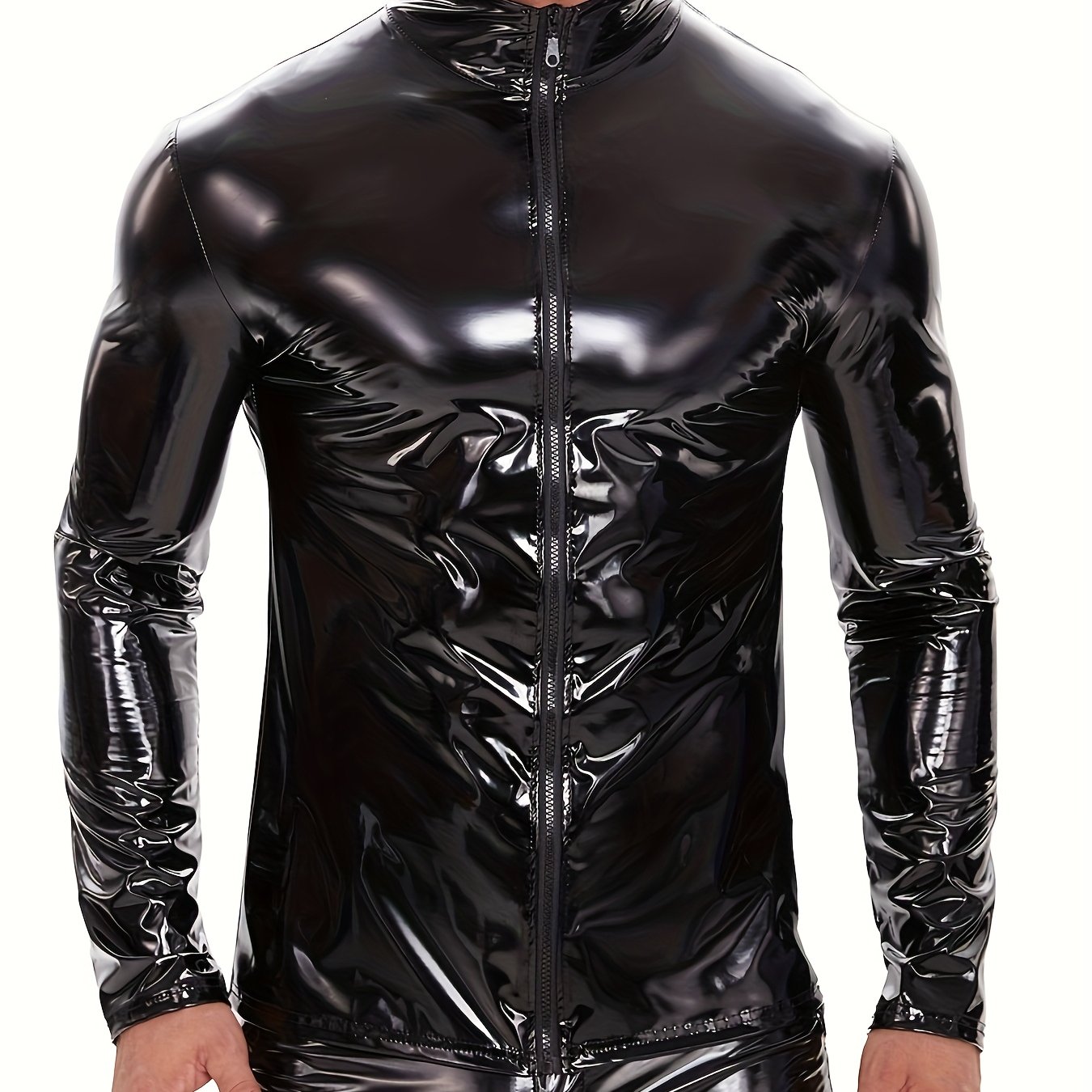 TEMU 남성용 슬림핏 인조 가죽 자켓 - 블랙 비즈니스 캐주얼 , 포켓, 긴 소매, 지퍼 클로저, 봄 & 가을용 소프트쉘 디자인, 봄 자켓 | 현대 캐주얼웨어 | 광택 있는 끝