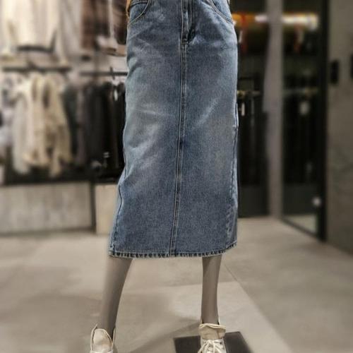 여성 청치마 뒷트임 롱 데님 스커트 데일리 패션 웨어