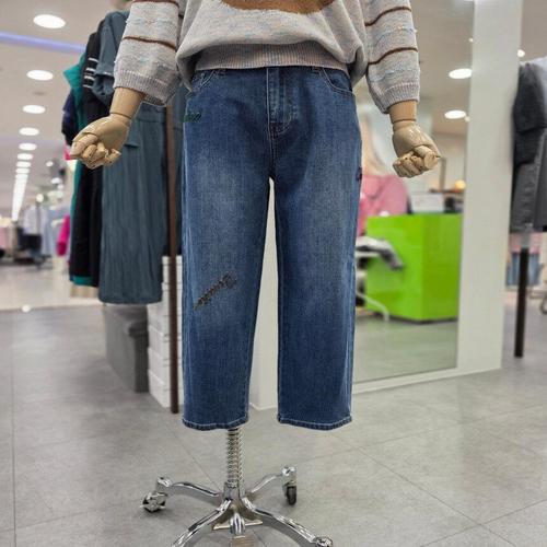 [다잇템][다잇템] 여자 진청 FW 자수 하프밴딩 세미배기 핀턱 청바지_14797491_588872