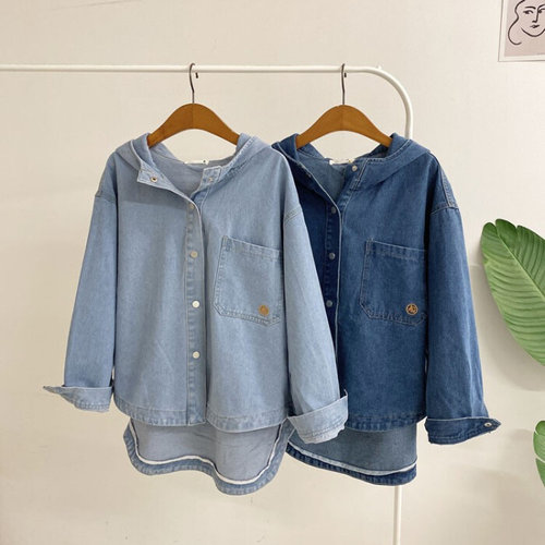 허니제이 / 디에르 포켓 자수 언발 후드 청 데님 자켓(2color)
