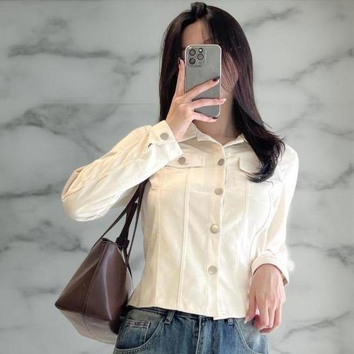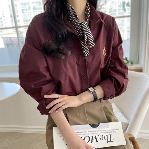 [샵앤]여성 카라넥 심플 자수 긴팔 블라우스 DGB-WBL-4763-베이지