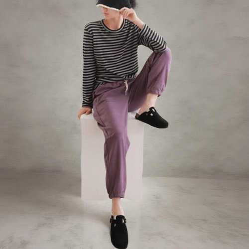 옷자락 / 여성 일상 자수 허리끈 조거 팬츠