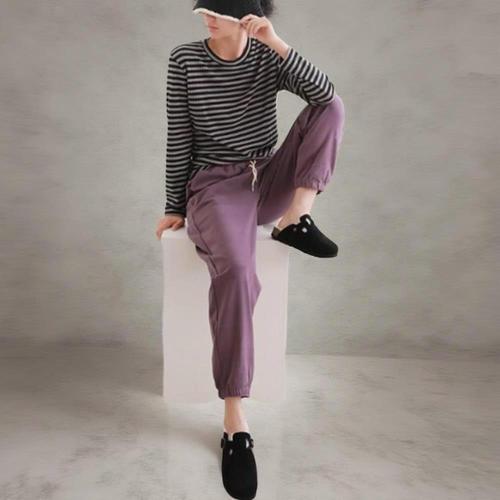 [유야]여성 플라워 자수 면 조거팬츠 -FPN0347- 봄 가을