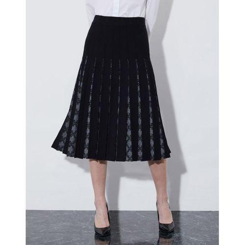 셀럽당 여성용 미디엄 자가드 스커트 주름스커트 A라인 스커트 Y00390