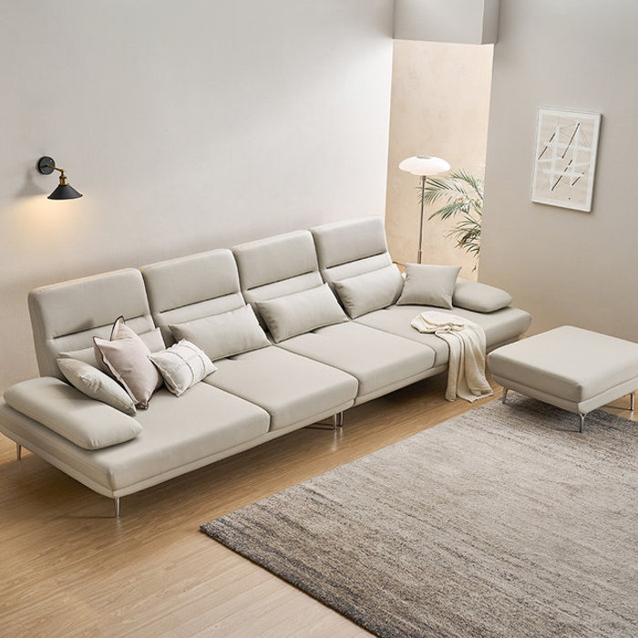 장인가구 베스테 천연면피 가죽 4인 소파+스툴