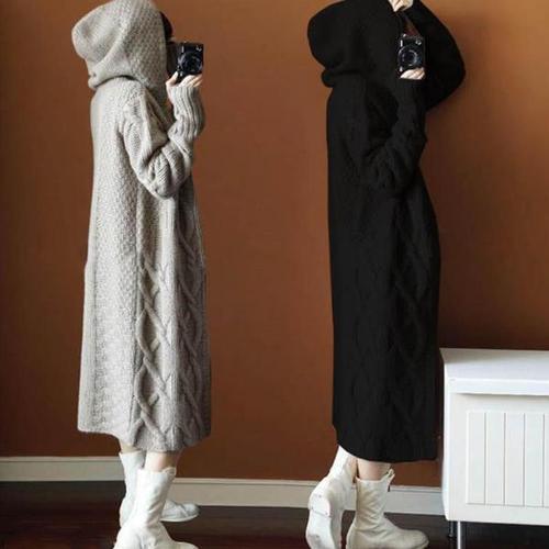 [오너클랜]인기상품 블랙 그레이 후드 꽈배기 롱 뜨개질 니트 가디건 [WAE7EED_250917]