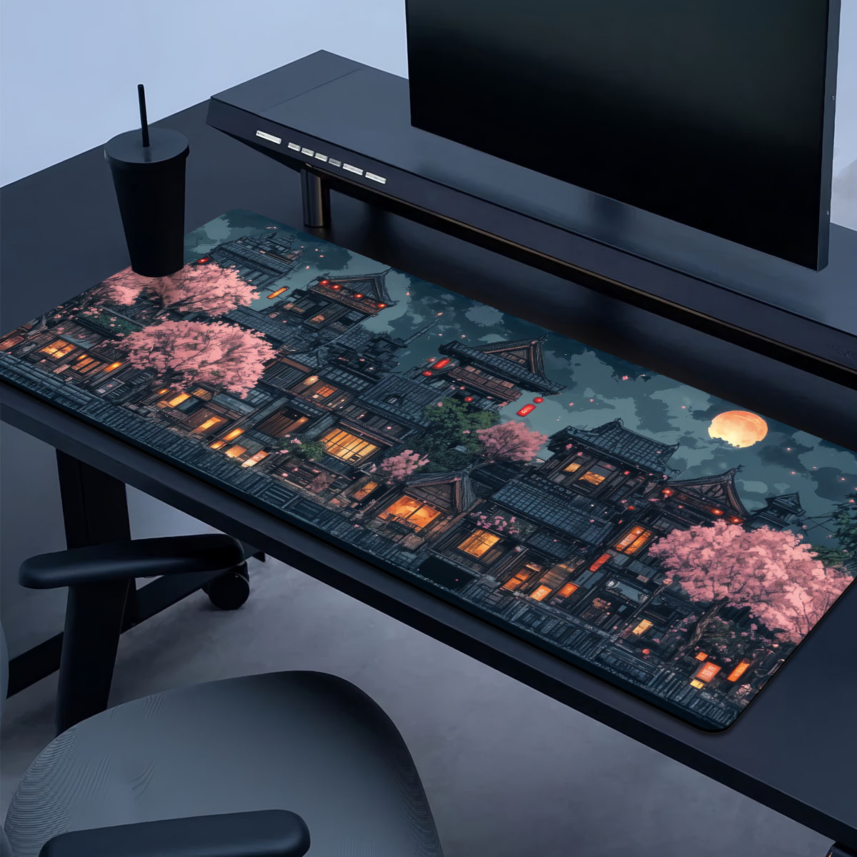 TEMU 1개 일본 애니메이션 벚꽃 & 야경 데스크 매트 - 미끄럼 방지 XL/XXL 게이밍 마우스 패드 & 키보드 커버, 고무 베이스, HD 프린트 일본 패턴, PC/노트북용, 내구성 있는 컴퓨터 액세서리, 홈 오피스, 게이머 선물