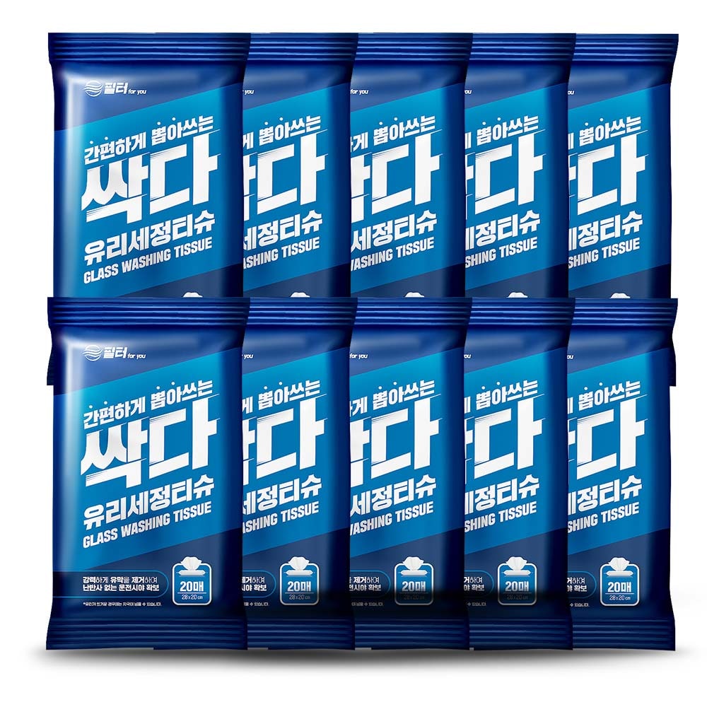 싹다 자동차 유리세정 티슈 유막제거 간편 일회용 차량용 20매 x 10팩