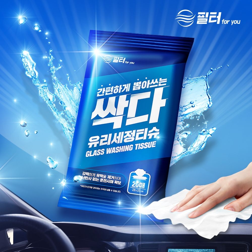 싹다 자동차 유리세정 티슈 유막제거 간편 일회용 차량용 20매 x 1팩