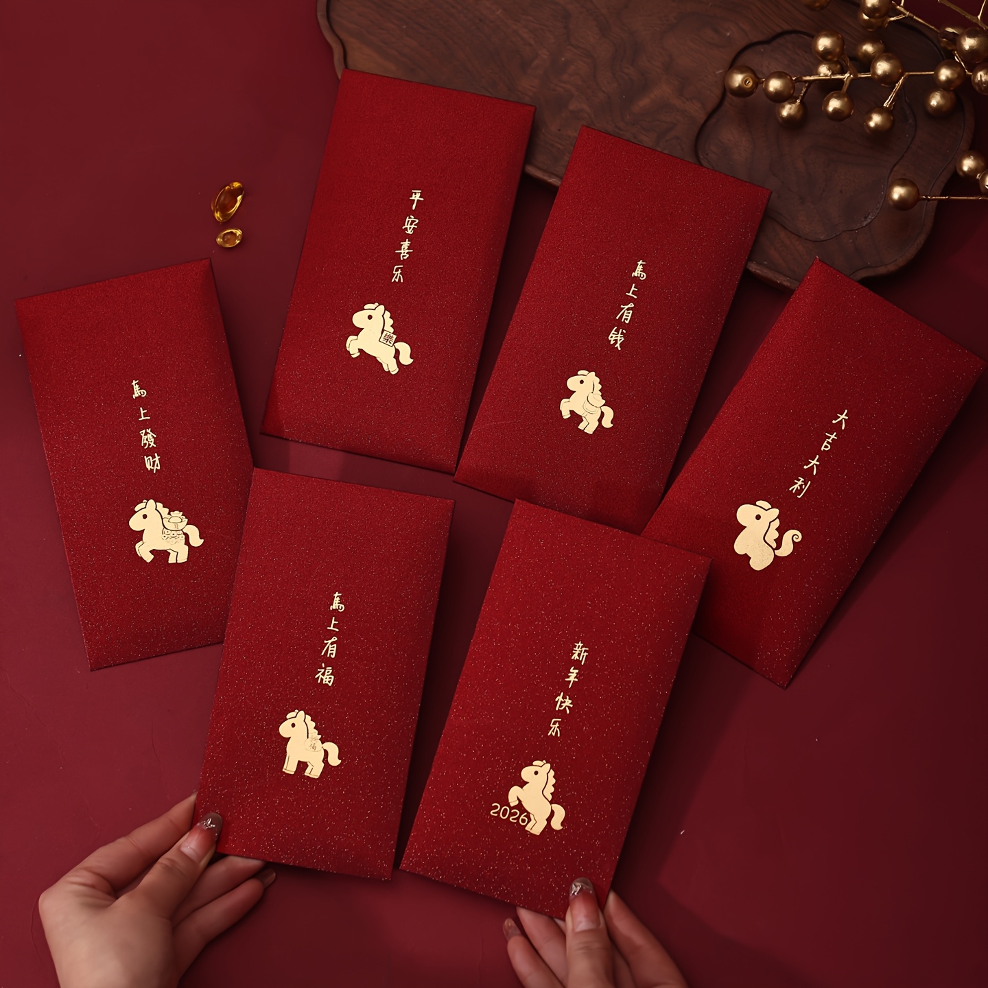 TEMU 새해 빨간 봉투 가방 6개 세트 | 독특한 디자인, 깊은 빨간색 무광 카드보드 선물 가방, 현금, 선물 카드 및 휴일 선물에 적합