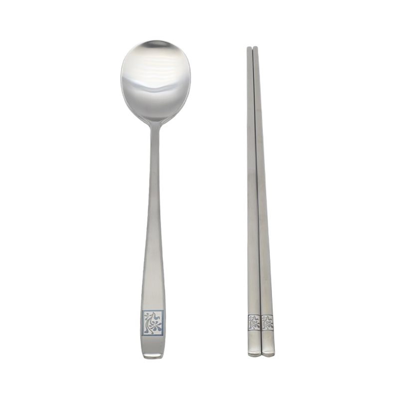 DMK 스테인리스 전통무늬 컬러 레이 저 청 수저 1P