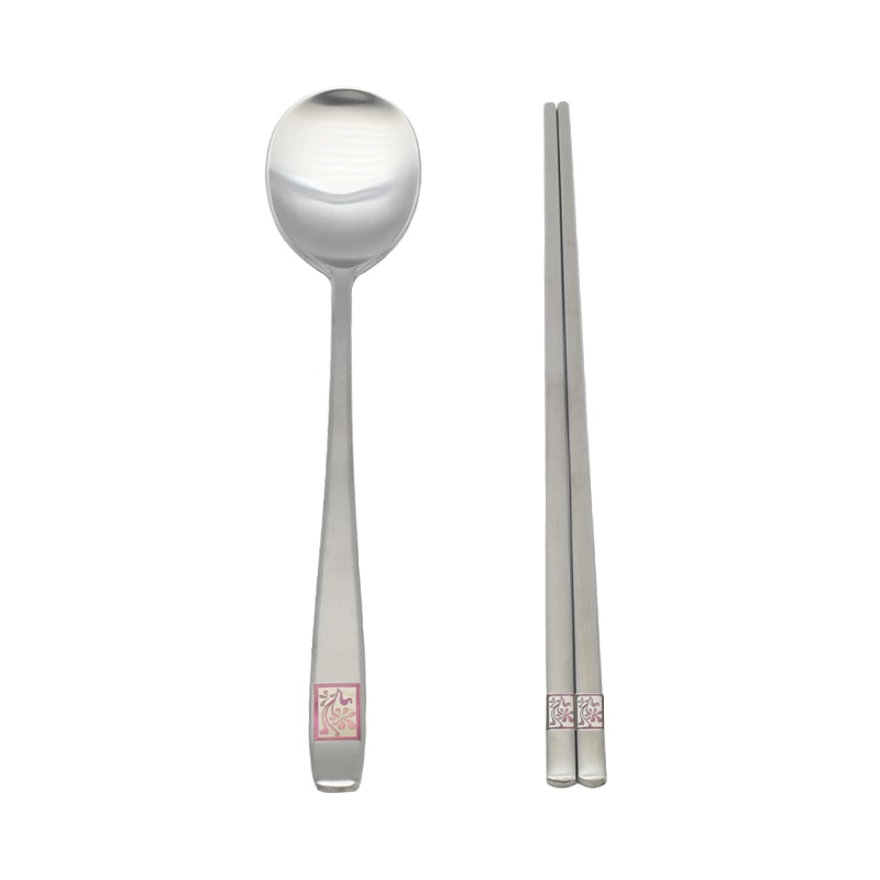 DMK 스테인리스 전통무늬 컬러 레이 저 홍 수저 1P
