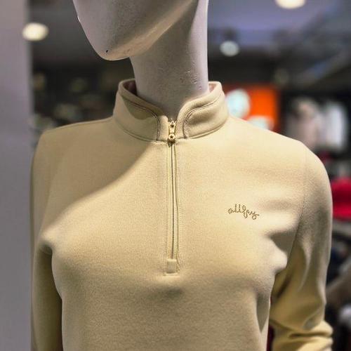 [올포유]여성-두께감 있는 사카리바 원단/에리 절개 메탈 포인트 솔리드 기모 반집업 티셔츠-WTHNA261