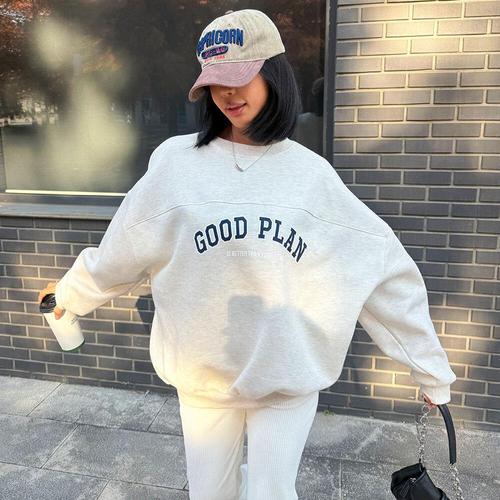 [미라클세븐]여성용 캠퍼스 스타일 레터링 루즈핏 절개 겨울 기모 티셔츠