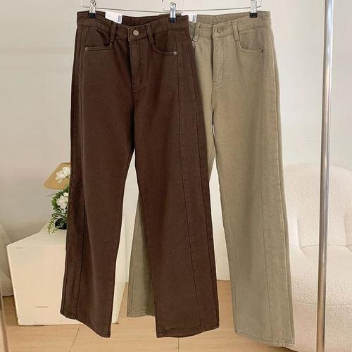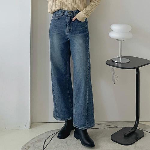 [진에비뉴] 마일드 옆절개 데님 와이드 팬츠(사계절/기모) 허리밴딩 4컬러 2기장 S-2XL
