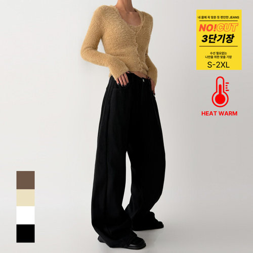 포인 / 기모안감/3단기장 코엔트 커브드 절개 와이드 팬츠 4color