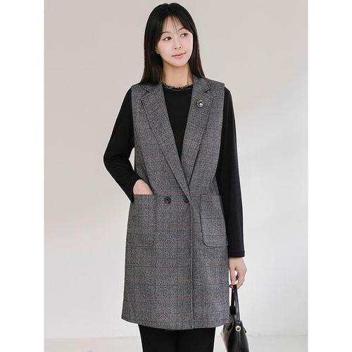 [드리다]글렌 체크 카라 빅사이즈 롱 정장 베스트 조끼 미시 중년 엄마옷 하객 모임 상견례
