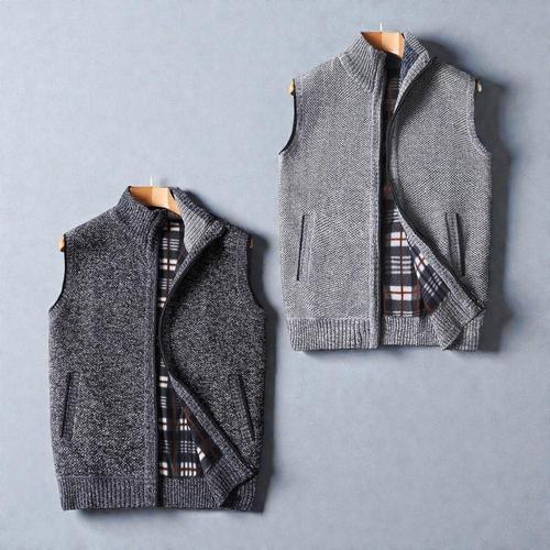 남성 플리스 안감 니트 조끼 베스트 정장조끼 두지퍼 겨울조끼 WFL7CFA